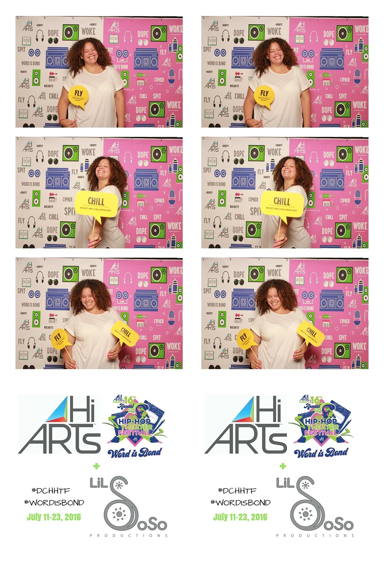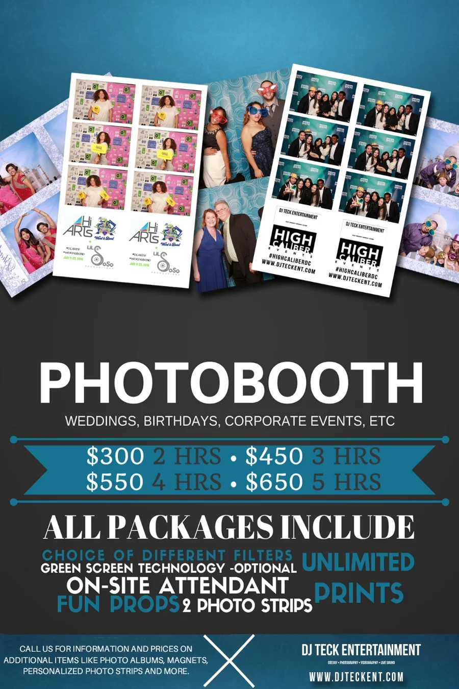 Custom graphic included on each photo strip or photo (your name, company logo or wedding date, etc.)